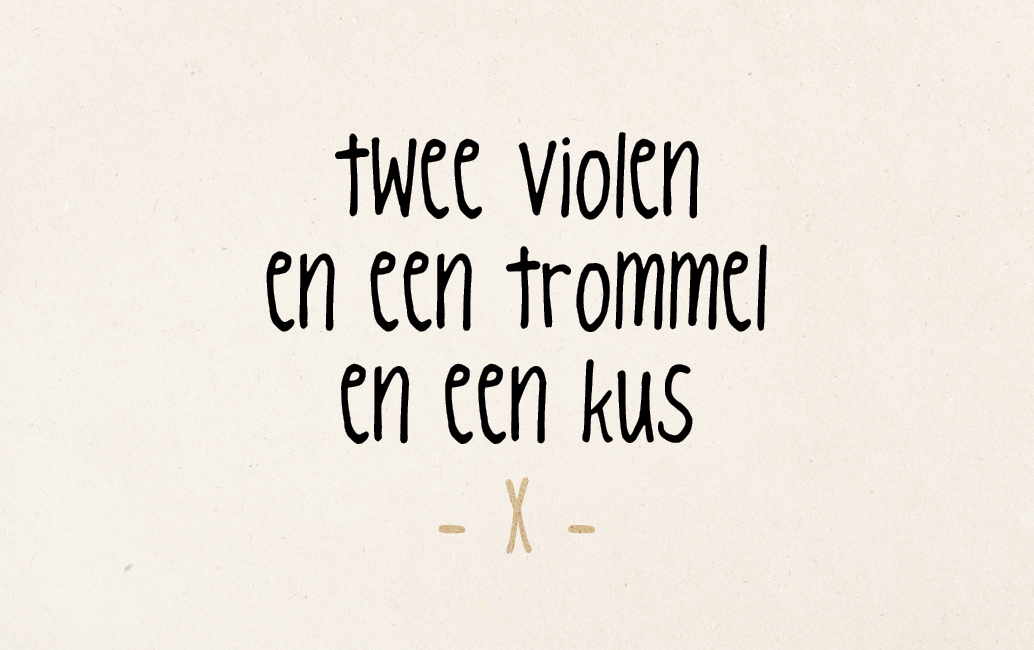 F9 - Twee violen en een trommel en een kusPapieren Wens / Postkaart