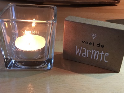 Je kunt qua luciferdoosje kiezen uit de teskten 'Voel de Warmte' en 'Lichtpuntjes voor jou'. Geef in het winkelmandje even aan welke tekst je er graag bij wilt ontvangen!