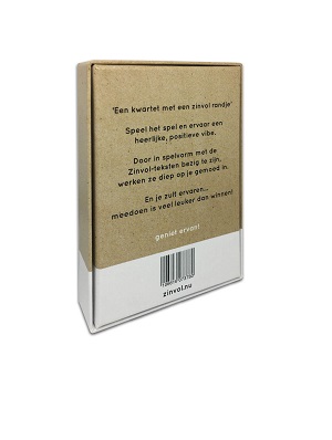 Zinvol Kwartet - VIER het leven!Een kwartet met een Zinvol randje... Speel het spel en ervaar een heerlijke, positieve vibe. Door in spelvorm met de Zinvol-teksten bezig te zijn, werken ze diep op je gemoed in. En je zult ervaren...meedoen is veel leuker dan winnen!