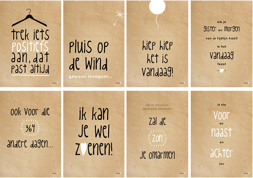 Serie 'Gewoon Groot' bestaat uit 8 verschillende modellen. De naturel kleurige uitvoering geeft een natuurlijke en rustieke uitstraling. Op elke kaart staat een originele Zinvol tekst en ontwerp.