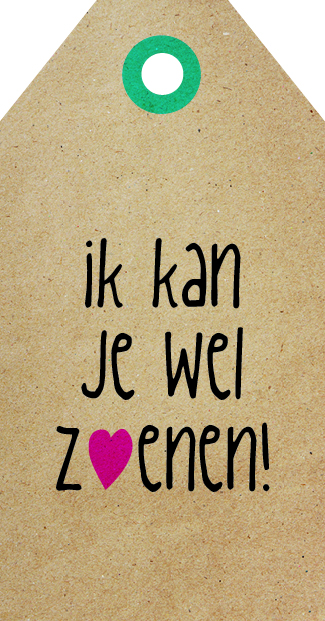 Zingever - Ik kan je wel zoenenZingevers Zingevers zijn bedacht en ontworpen voor kado-winkels, bloemisten, slijterijen, bonbonneries, life-style winkels ed. De naturel kleurige uitvoering geeft een natuurlijke en rustieke uitstraling. Op elk kadokaartje staat een originele Zinvol tekst en ontwerp. Materiaal: FSC mix/ 400 grams papier mat, formaat 55 x 105 mm.