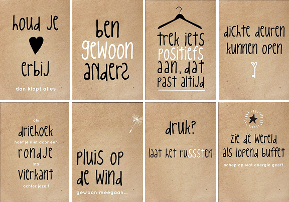 De serie 'Gewoon anders' is te bestellen in twee verschillende formaten. De A3 serie bestaat uit acht verschillende ontwerpen. In A4-formaat hebben we vijftien ontwerpen beschikbaar. Carla Bloom van Bloomstyl heeft speciaal voor Zinvol houten standaardjes gemaakt voor de A4 - posters.
